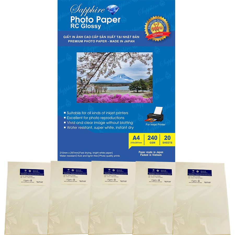 Tên sản phẩm: Giấy in ảnh RC lụa Sapphire Nhật Bản – Định lượng 230g