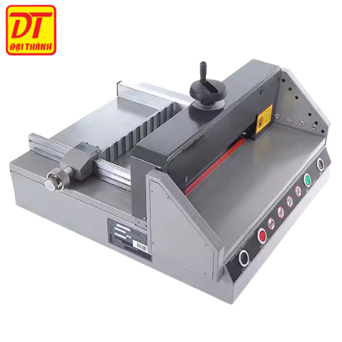 Máy được trang bị động cơ ép giấy riêng biệt, cho phép ép trước rồi cắt sau. Bạn chỉ cần thực hiện các thao tác đơn giản bằng nút bấm, tiết kiệm thời gian và công sức.
