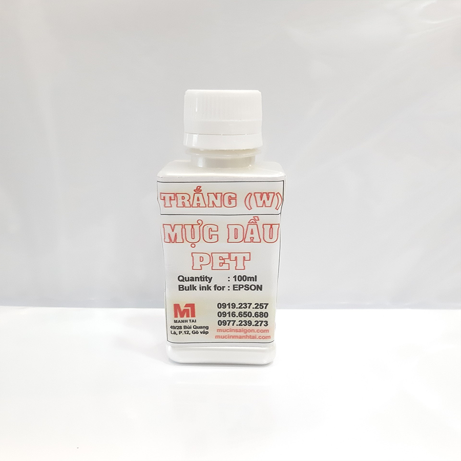 Tên sản phẩm: Mực in pet chuyển nhiệt - màu trắng - 100ml